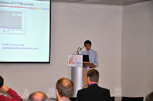 近日,应欧洲光通信会议及展览会(ECOC 2011)的邀请,我院教授潘时龙博士赴日内瓦在最高国际会议作了题为“UWB over WDM-PON”的特邀报告。潘时龙教授在其报告中介绍了光载超宽带与波分复用无源光网络融合接入技术的最新进展以及我院微波光子学实验室在该领域的研究情况,这是该会议在过去十年中第二次由国内学者作的特邀报告。报告后,潘教授及著名微波光子学专家Jose Capmany, Tadao Nagatsuma, Christina Lim, Valerio Pruneri, Chris Roeloffzen就微波光子器件与集成系统与听众们进行了30分钟的专题研讨。