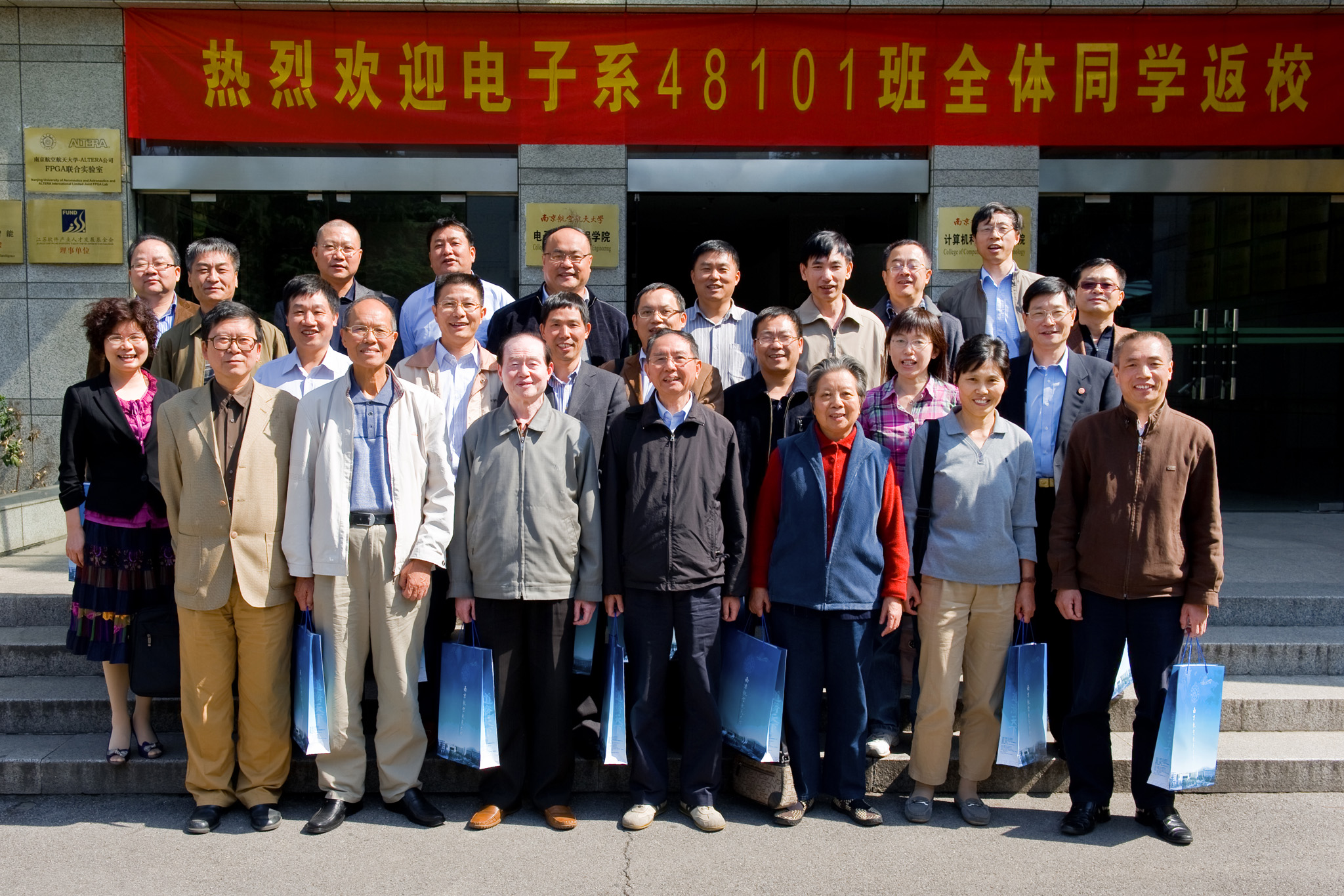 欢迎仪式的最后,为感谢母校的辛勤培育,48101班集体向学院赠送了礼品。仪式结束后,学院领导和老师与校友们合影并参观了明故宫校区和将军路校区。