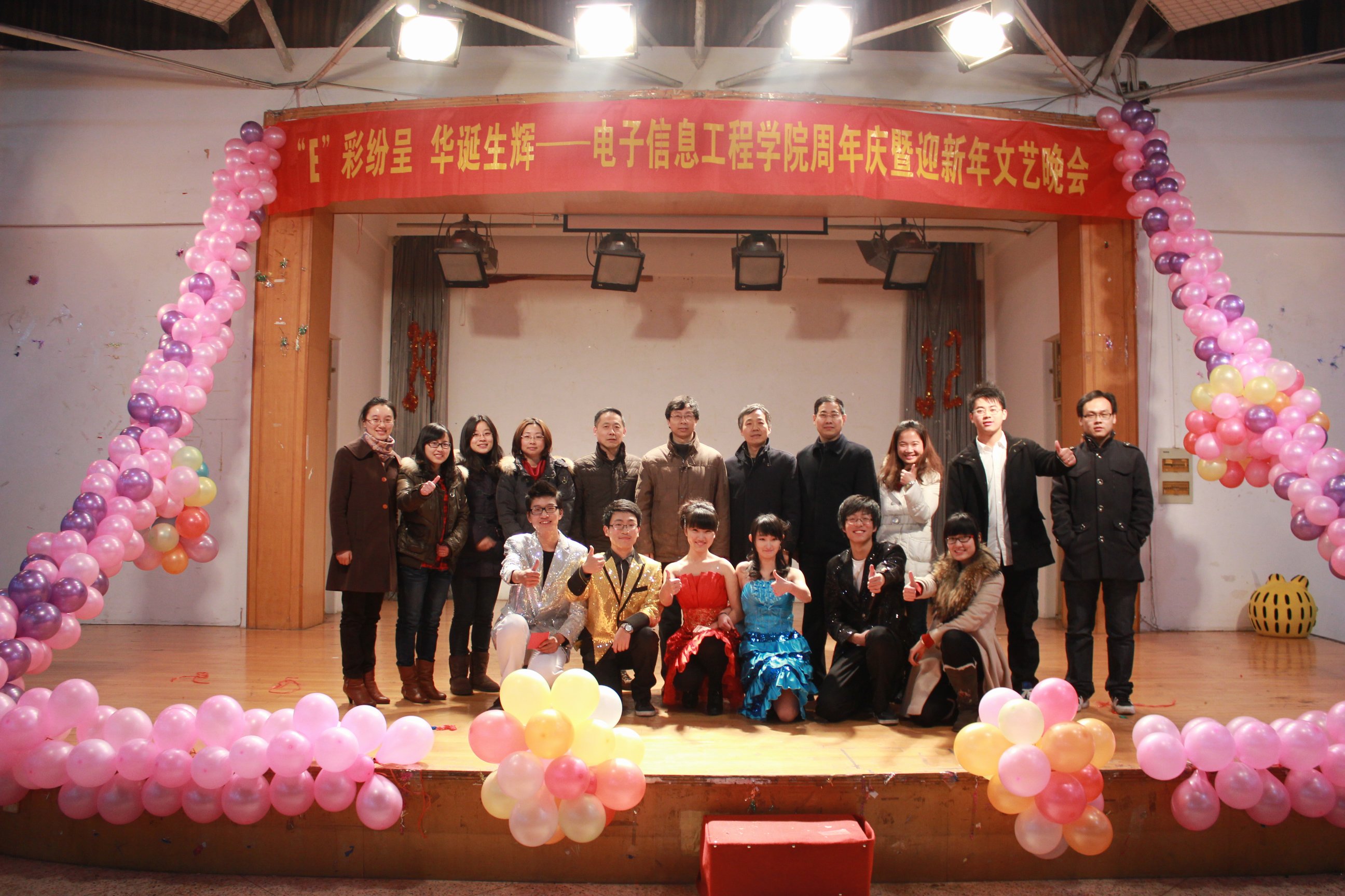 2011年12月29日晚七点,91免费视频 “E彩纷呈,华诞生辉”周年庆暨迎新年文艺晚会在将军路校区大学生活动中心隆重举行。学院常务副院长周建江,副院长赵永久、张弓,党委副书记季海群,班主任代表张颖、葛芬,教学办主任谈静艳,团委书记张晓燕以及全体辅导员老师,与400余名同学共同参加了本次晚会。