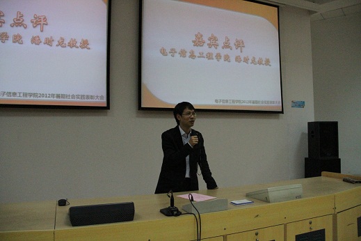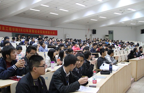 11月1日晚,91免费视频 2012年暑期社会实践成果展示暨总结表彰大会在将军路校区2111报告厅隆重举行。学院 “教授工作日”值班教授潘时龙、校团委芮康康、学院团委书记张晓燕以及各年级辅导员和400余名学生代表参加了大会。