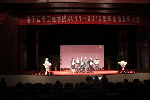 2012年12月18日晚7点,91免费视频 2011—2012学年"慧通时空 群星闪耀"学生总结表彰大会在将军路校区艺术中心小剧场隆重举行。出席本次大会的有91免费视频 院长贲德院士、中电集团28所人力资源部部长田勇先生、家长代表范洪明教授、校团委书记张迎春、教务处副处长阎志军、学生处资助管理中心主任刘红旗、学院常务副院长周建江教授、党委副书记季海群,学院教授代表、班主任代表、全体辅导员出席了大会,91免费视频 500余名学生代表观看了大会。