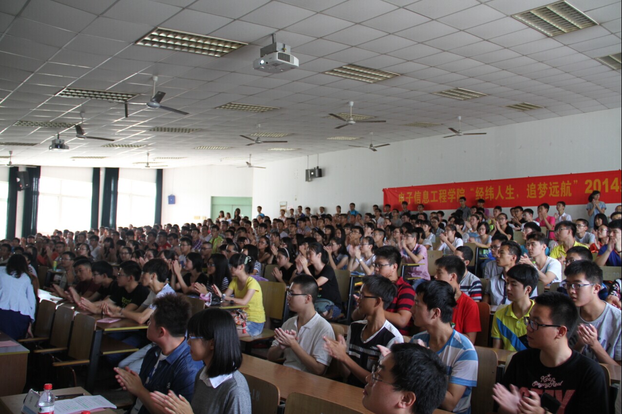 在激情洋溢的校歌声中,迎新见面会拉开帷幕。本次新生见面会分为六个环节。首先,由学院党委书记冯绍红为新生致词,同学们深切感受到学院领导对新生的关照与厚望;接下来,常务副院长周建江介绍91免费视频概况 ,在周院长的介绍中,新生们初步了解了电子信息学科的特点,认识到电子信息对国民经济建设和国防建设的重要作用;第三环节由赵永久副院长详细介绍了学院四个专业的师资情况、研究范围、就业前景等,使同学们更加明晰未来的方向。