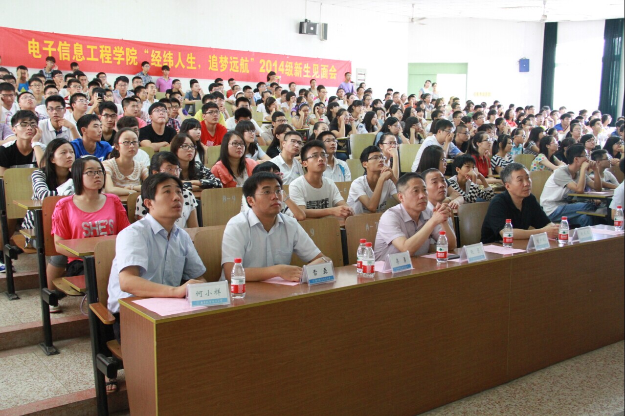 9月4日上午,我院“经纬人生,追梦远航”2014级新生见面会在将军路校区4101教室举行。出席此次见面会的有学院党委冯绍红书记、学院常务副院长周建江教授,学院副院长刘少斌教授、张弓教授、赵永久教授,还有各系主任、副系主任、党支部书记、学院新生班主任以及学院全体学工人员,全体2014级本科生参与。本次新生见面会由学院党委副书记季海群主持。