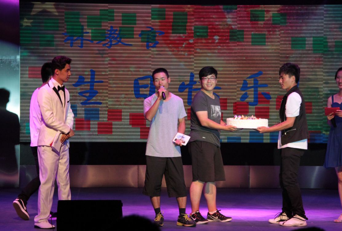 篇章的过渡环节中穿插了“2048”和“我爱世界杯”两个互动游戏,参加游戏的不仅有新生辅导员冷阳,还有几位教官。游戏结束后,恰好这天过生日的林教官更是收到了全院同学的祝福,大家一起唱生日歌,分享蛋糕,其乐融融。