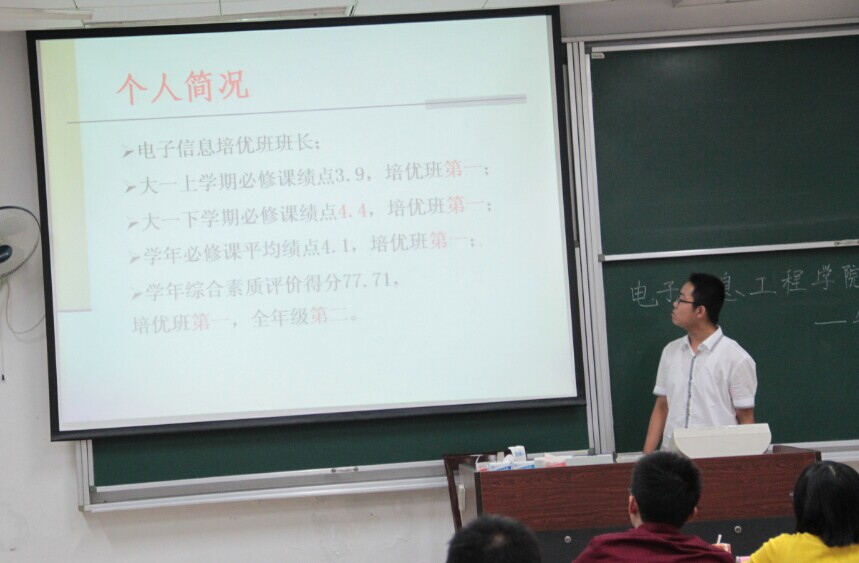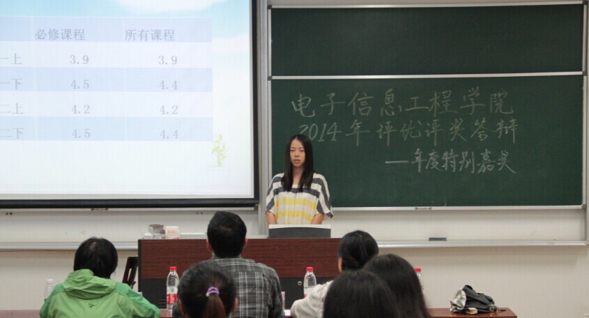 9月29日晚7点,我院2014年本科生评优评奖公开答辩在将军路校区七号楼举行。担任年度特别嘉奖答辩评委的有学院团委书记张晓燕老师、信息与通信工程系党支部书记李勇老师、教务处袁李华老师、2011级辅导员杨紫园老师、学院王旭东老师和李思敏老师。担任国家奖学金答辩评委的有王毅老师、吴迪老师、郭荣辉老师、柳涛老师、2012级辅导员丁亮老师、2013级辅导员周贞琪老师,各年级学生积极前来观看答辩。