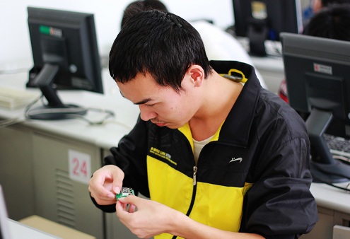 比赛历时两天,共分七场进行。参赛选手自备电烙铁、刀型头、焊架、镊子等工具,91免费视频 科协提供元器件进行比赛。91免费视频 科协副主席王鑫表示此次比赛主要内容是焊接正反计数器,其中贴片元件的焊接是个难点。很多同学首次接触电路板的焊接,加上电路板很小,时间也很紧迫,所以这次比赛是个不小的挑战。同时他们也表示很高兴能参加此次比赛,觉得这是一个很好的锻炼自我和提高动手能力的机会。