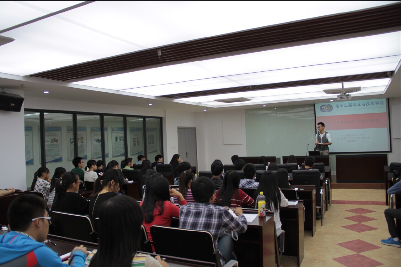 交流会伊始,南京理工大学电子工程与光电技术学院团委副书记对我院学生骨干们表示热烈的欢迎和良好的祝愿,紧接着对其院团委的日常工作和内部建设做了详细介绍。南理工光电学院学生会主席向在座的各位阐述了学生会的工作理念和工作内容;青协主席介绍了内部管理体系和志愿服务基地;科协主席介绍了科创体系以及科创实验室,社团联合会主席则以幽默风趣的形式介绍了各社团的工作情况。