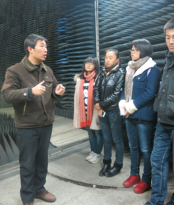 到达明故宫校区后,同学们首先在电子科学与技术系系主任何小祥老师的带领下来到了我院特有的的重点实验室—微波暗室。该室建于建校之初,投入巨额资金,整个房间被不锈钢包裹,实验室内可完全屏蔽信号,使科研人员可以更加精确地测量到实验数据,我院的多个科研成果都是建立在这个暗室的基础上完成的。何老师一边带着学生参观一边详细讲解各个设备的作用,使学生们对电子信息专业有了更深刻的认识,对于这个专业也有了更加浓厚的兴趣。参观完微波暗室后同学们来到了学院微波光子教育部重点实验室,见到我院的潘时龙教授。潘教授的一名研究生为同学详细地介绍了光电信息研究的发展方向和研究内容。现场学生和研究生学长你问我答,互动热烈。