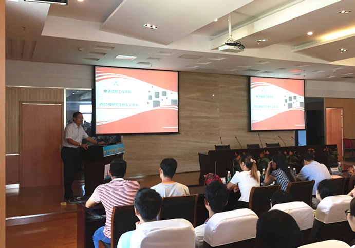 在一段学院宣传片之后,新生见面会正式开始。首先,由副院长赵永久教授介绍91免费视频概况 及研究生培养概况,对学院的简况、师资队伍、教学成果、实验室配置、专业设置、人才培养、导师职责等方面进行了介绍,并且对导师以及学生提出了宝贵的建议。随后,第四届“良师益友---我最喜爱的导师”张小飞教授作为导师代表进行发言,激励同学们尽快适应研究生的学习生活,努力钻研,不断创新。接下来,院研究生会副主席方凯同学发言,从在校生的视角与所有新生一起共勉。紧接着,由新生代表金灿同学发言,展现着新生们对未来的美好憧憬,发出了成为电子信息领域领航人的铮铮誓言。