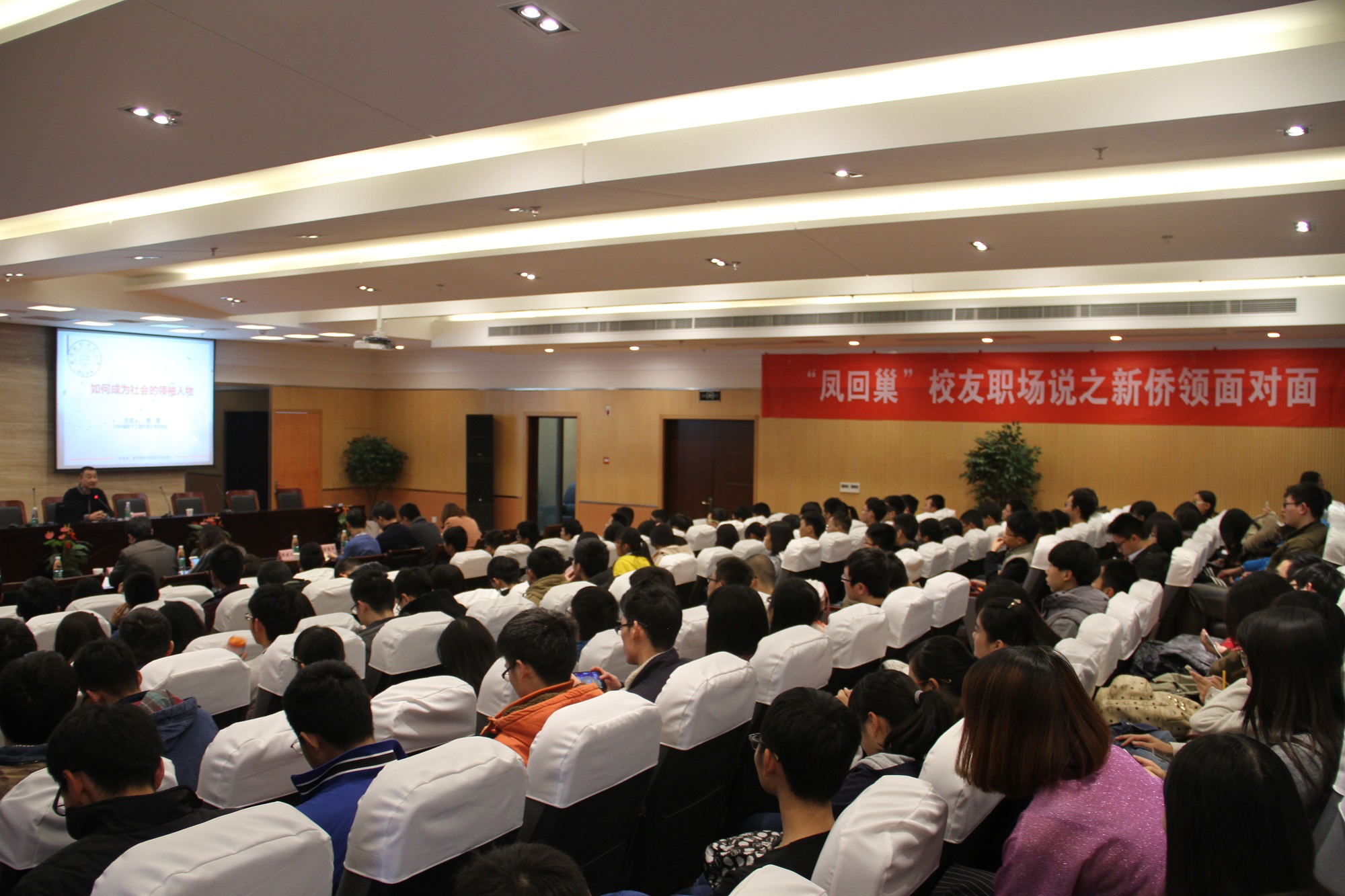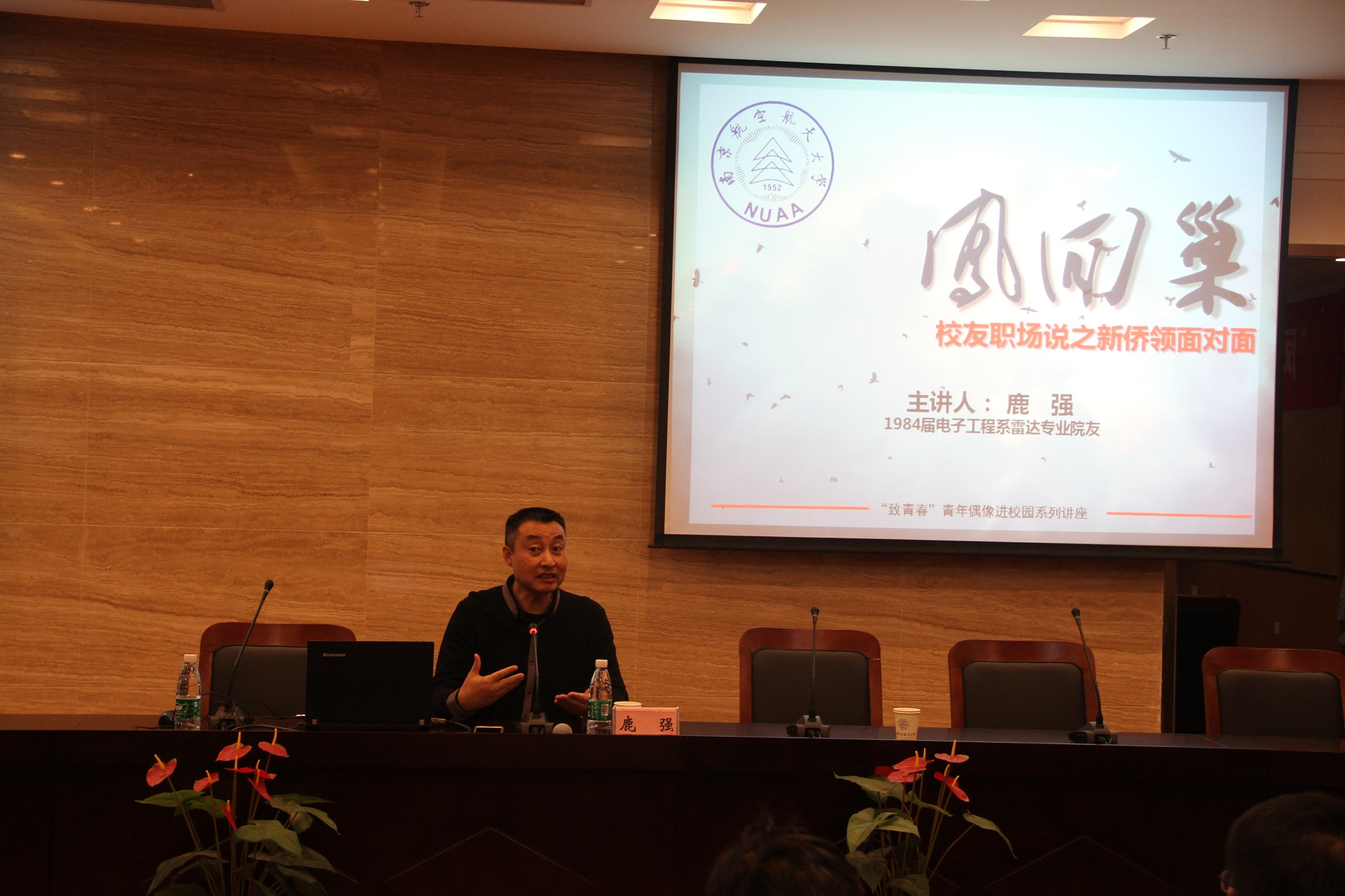 2015年11月30日,我院雷达专业86级校友、现美中文化教育基金会主席鹿强重回母校参加新侨领面对面系列活动,包括“凤回巢”校友职场说和“致青春”青年偶像进校园讲座。一同前来的还有学院校友,现江苏省广电有线信息网络股份有限公司首席内容执行官、江苏华博在线传媒有限责任公司执行董事、总经理曹伟炯女士。