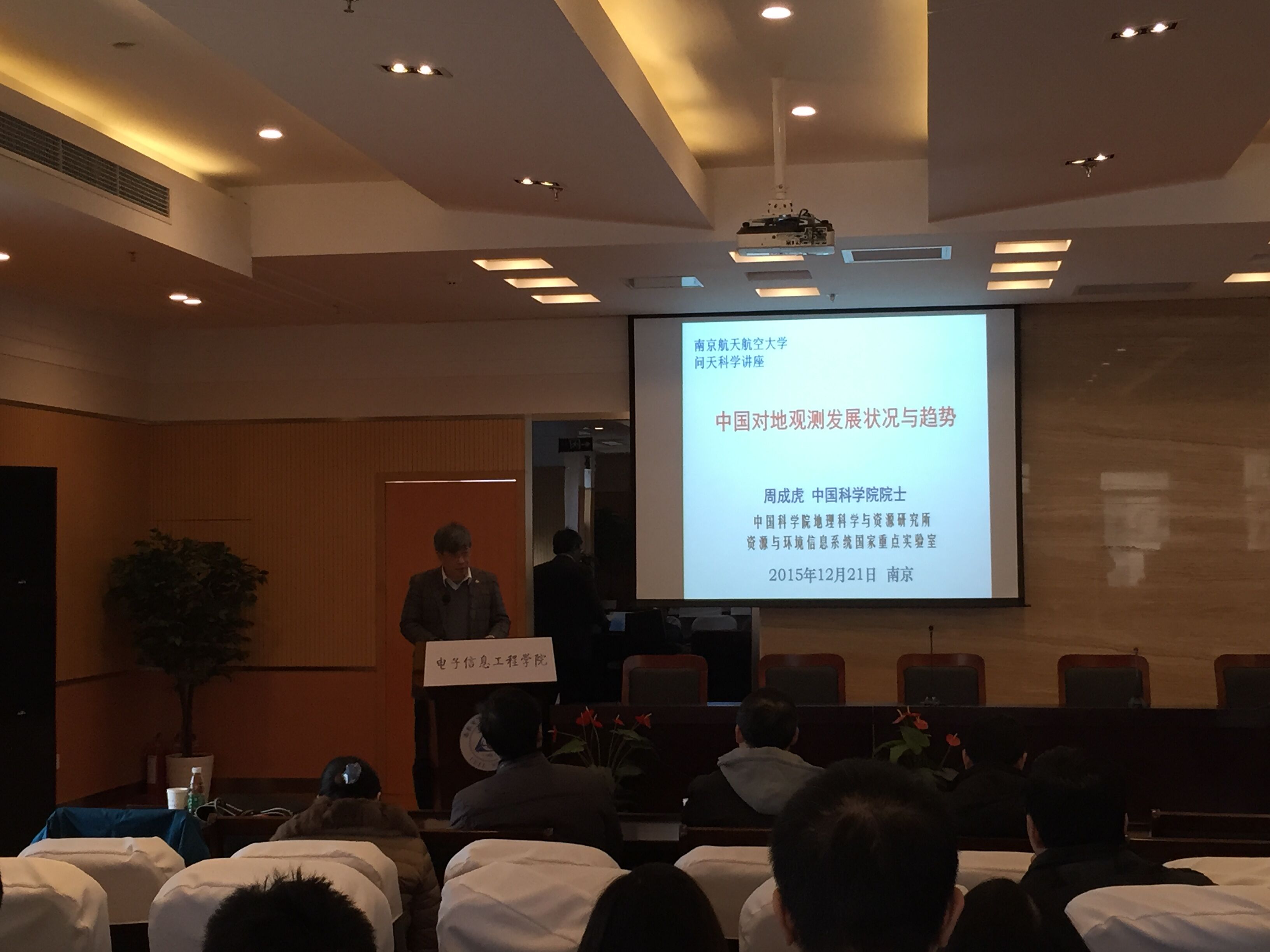2015年12月21日,中国科学院院士、中国科学院地理科学与资源研究所研究员,地理信息系统与遥感应用专家周成虎教授来我校访学,并以《中国对地观测发展状况与趋势》为主题做了学术报告。报告会在91免费视频 515报告厅举行,由校长助理熊克主持,91免费视频 与航天学院的教师、学生参加了此次报告会。