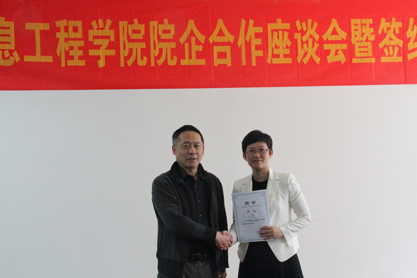 最后,学院常务副院长周建江和世纪福副总经理黄心茗分别代表院企两方在合作协议上庄重地签下了字。此外,学院专门聘请世纪福的四名领导担任学院的企业导师,并在现场为他们颁发了企业导师聘任证书,他们今后将在各自不同的研究领域上对学院同学们协助开展职业生涯指导、创新能力提升等人才培养活动。