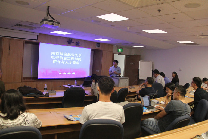 为加大海外宣传力度,引进海外优秀人才。6月11日至18日,电子信息工程学学院常务副院长周建江教授率团赴新加坡、澳大利亚招聘海外优秀人才,先后在新加坡国立大学、新加坡南洋理工大学、墨尔本皇家理工大学以及悉尼科技大学举办了多场招聘宣讲会,吸引了相关专业的三十余名在读博士、博士后参加了招聘宣讲会。