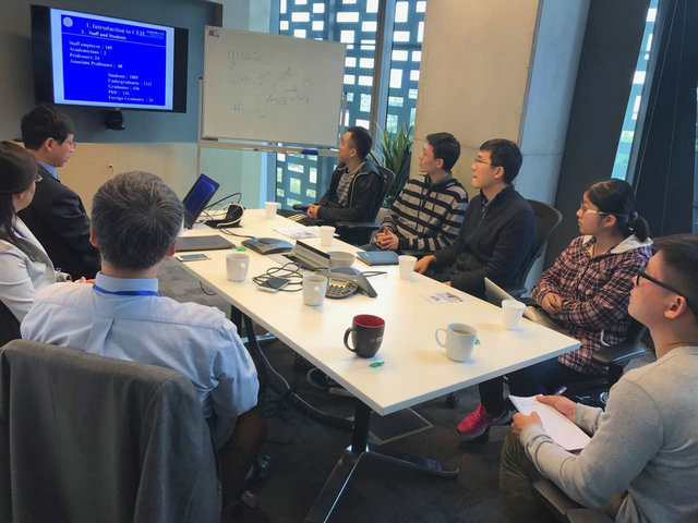 在悉尼科技大学,招聘团拜访了澳大利亚工程院院士、全球大数据技术中心总监郭英杰教授,双方在围绕电子信息技术和大数据发展对未来的影响进行了学术探讨,同时也对双方联合培养博士、教师公派访问、海外教师考核评聘制度等工作进行了协商和交流,并确定访问结束后进一步完善学生联合培养协议。随后招聘团与该校博士生进行了面对面的交流。