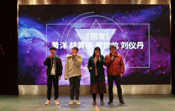 黄洋老师与胡黄雨、姜世龙、刘仪丹同学合唱《朋友》一起歌颂师生情谊的天长地久。