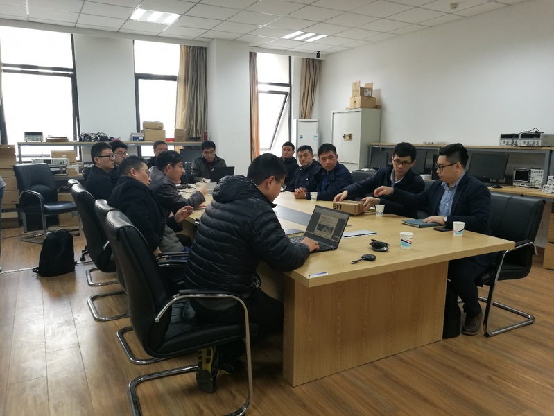 吴院长首先对学院以及实验室建设情况、团队、研究方向、今后的规划等方面进行了介绍,之后,王正、徐帆、董超、黄洋、贺荣等老师依次介绍了频谱数据挖掘与态势感知、图像处理、车联网、无人机查找“黑广播”、频谱管控链抗干扰通信系统等内容。陈总一行也对750厂研制的一款工控机进行了介绍,并表示该工控机经过剪裁之后可以满足低功耗的无人机应用需求。