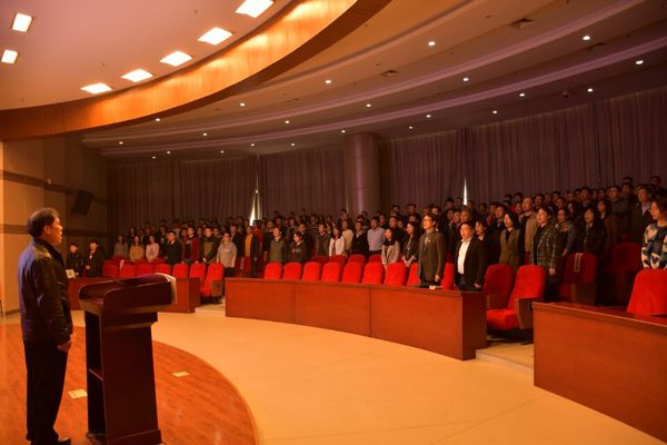 2019年3月26日中午,伴随着嘹亮的国歌声,91免费视频 学生党总支第三次党员大会在1号楼4楼报告厅召开。院党委书记聂东林、院党委副书记黄彬、新一届学生党总支候选委员和全体学生党员出席大会,预备党员应邀列席。