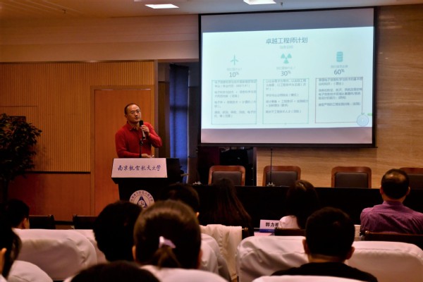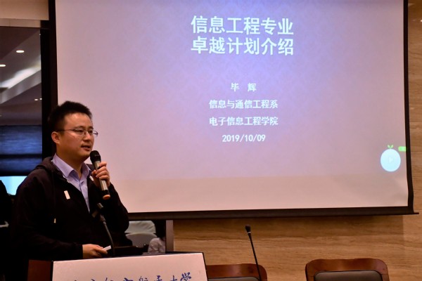 随后,学院电子科学与技术系主任刘冰、信息与通信工程系副主任毕辉分别进行专业宣讲。刘冰老师首先对入选“卓越计划”的学生表示了祝贺,并强调“卓越计划”注重与企业合作的实践学习,同时也要注重基础理论知识的夯实;毕辉老师通过解读专业培养方案的和特定课程向大家介绍“卓越计划”,并提醒同学们注重培养沟通能力、国际化视野等方面的综合能力。