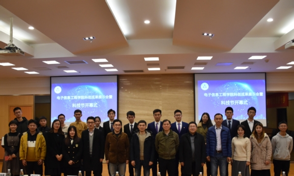 大学生科技创新工作是提升育人质量的重要平台与载体,为促进学生专业能力培养与创新意识养成,推进我院高素质公民和电子信息工程领域的未来开拓者的人才培养目标,12月4日,91免费视频 举办了第二届大学生科创成果展示会暨科技节开幕式。91免费视频 党委书记聂东林、党委副书记黄彬、华为海思AI生态技术总监符秋杰、华为南京研究所AI生态项目经历宋业伟、学院院长助理洪峰、学院团委书记徐艳惠和全体辅导员一同作为嘉宾出席了开幕活动。