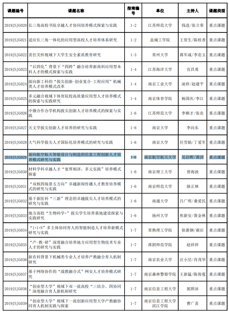 吴启晖教授、黄洋副教授共同主持的江苏省高等教育教改研究课题(以下简称“省教改课题”)重点课题《面向航空航天智能设计与制造的信息工程创新人才培养模式研究与实践》获得立项。据悉,2019年省教改课题,经专家评议、结果公示和省教育厅审定,评选出立项课题660项,其中重中之重课题17项,重点课题131项,一般课题512项。91免费视频