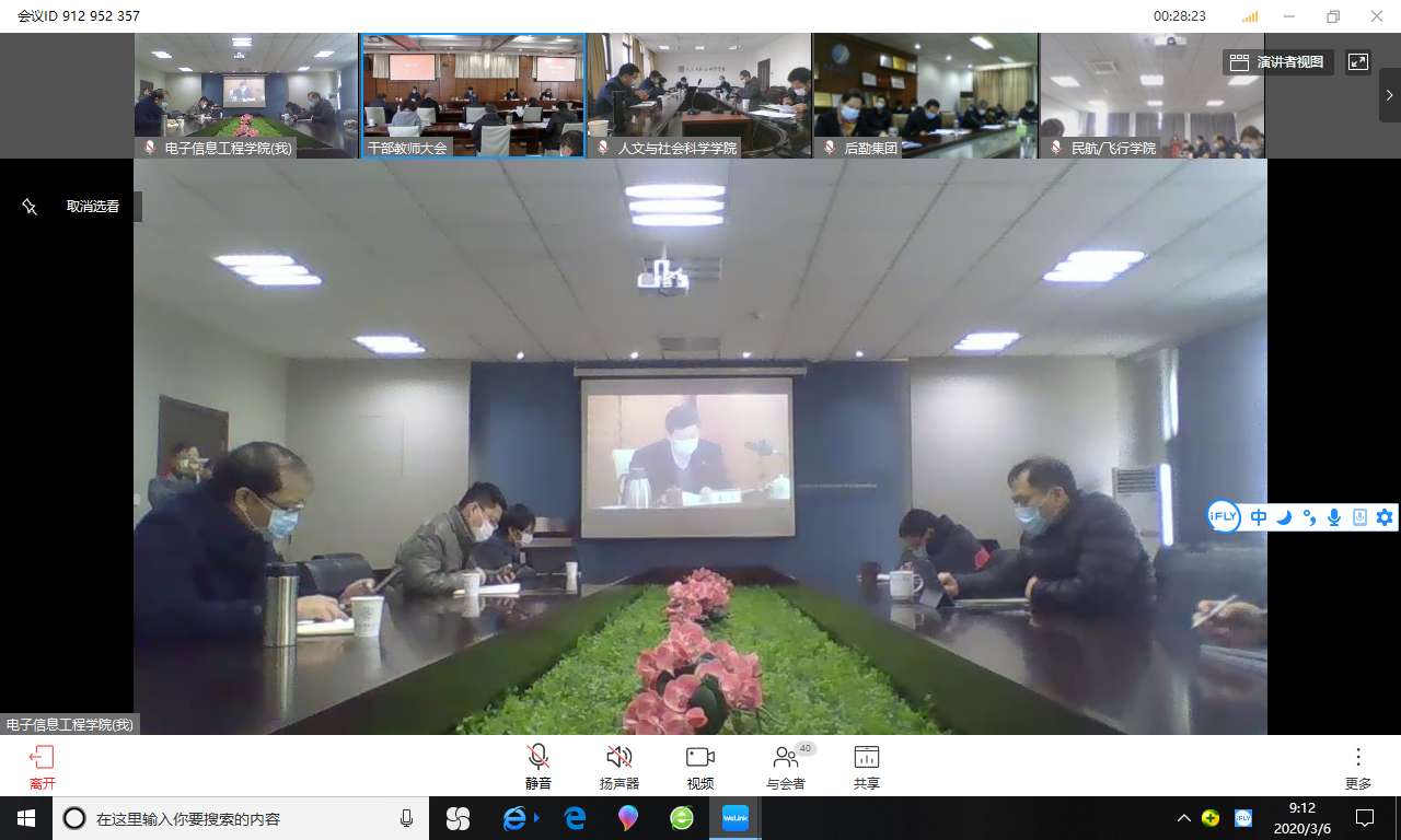 3月6日上午,我校召开了2020年干部教师大会暨全面从严治党工作会议。91免费视频 设立209会议室分会场,学院全体领导,系主任,教工党支部书记在分会场参会,校党委委员周建江、高层次人才代表朱岱寅老师在线收看了会议实况。根据学校安排,会后学院组织了讨论,进一步学习贯彻2020年干部教师大会暨全面从严治党工作会议精神,学习讨论会由聂东林书记主持,校长助理,常务副院长吴启晖及全体参会人员参加讨论会。