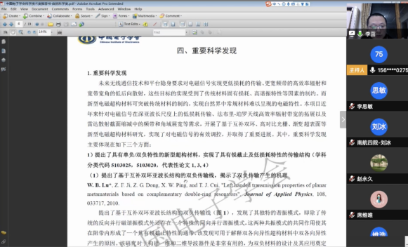 本次研讨交流会以微波方向老师参与为主,希望以此为示范带动其它方向参与申报,会议期间,李茁、周永刚、薛敏和孔祥鲲老师作为科研获奖嘉宾对科研申报过程中的经验和技巧进行了分享,特别为大家详细介绍了科研报奖过程中需要注意的重要环节和需要准备的重要材料,潘院长在交流会最后总结发言,为大家进一步梳理申报困惑并鼓励大家积极申报,交流会总共持续一个多小时,取得了较好到效果。