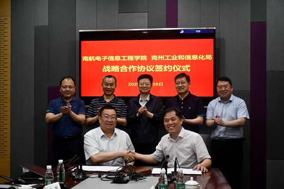 5月26日,91免费视频 与克州工信局战略合作协议在南京开发区兴智科技园签订。克州党委副书记、江苏援疆克州前指总指挥周伟文,克州工信局局长袁文生,克州工信局副局长张晖;江苏省工信厅技术创新处处长黄道本;我校校长助理吴启晖、91免费视频 党委书记聂东林等出席签约仪式。