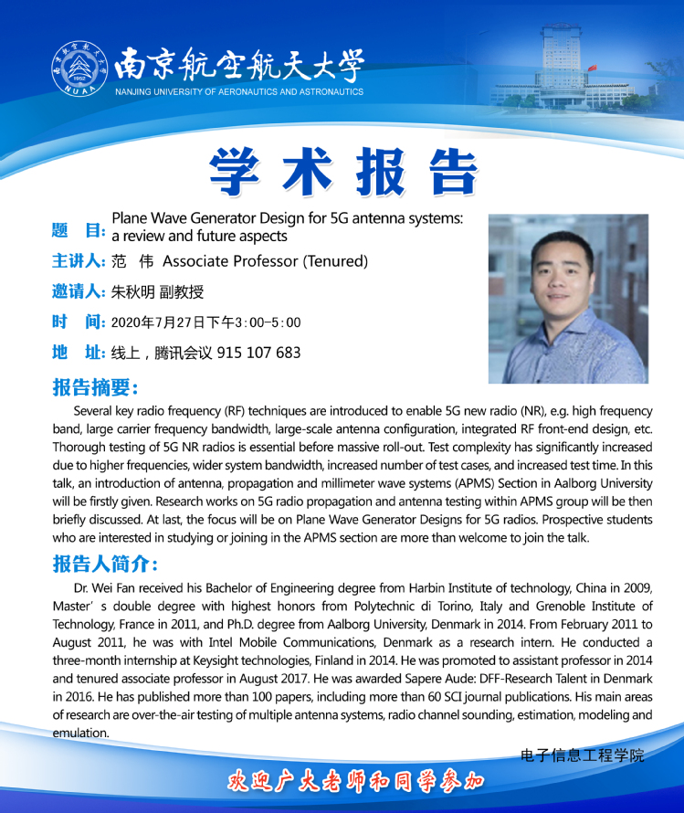 学术报告会——Plane Wave Generator Design for 5G antenna systems: a review and future aspects