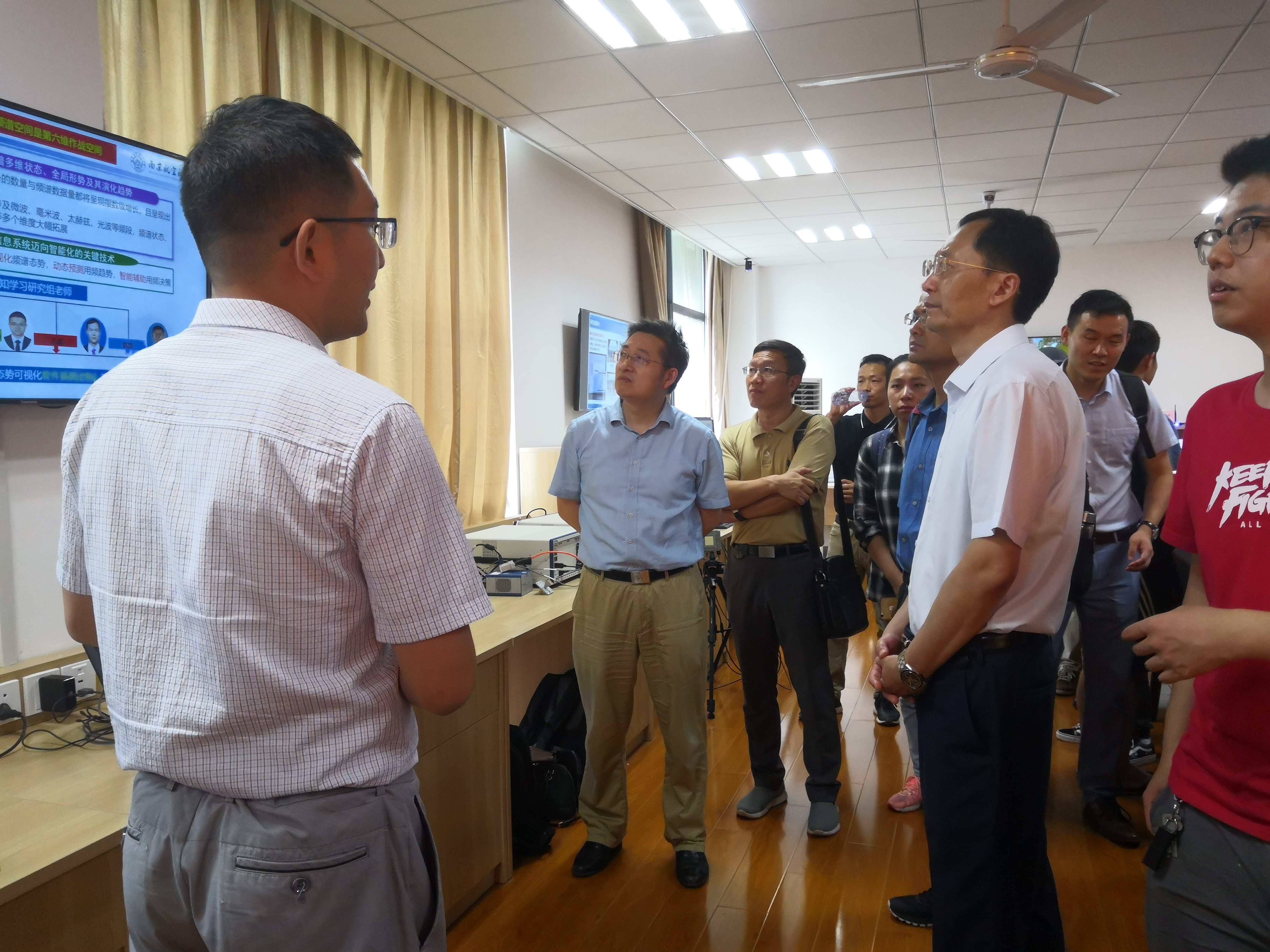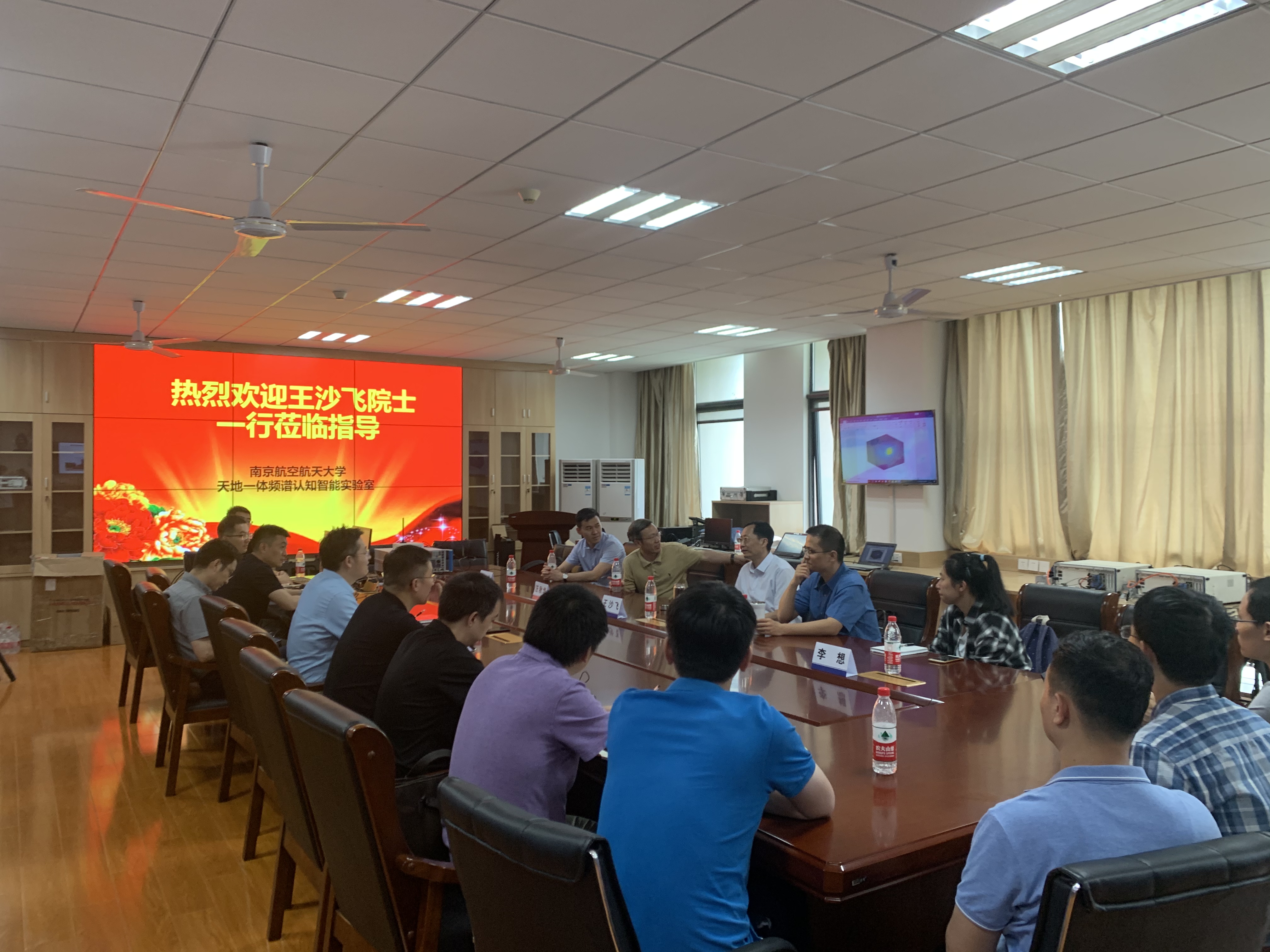 首先,吴启晖代表实验室全体师生对王沙飞院士一行的莅临表示热烈欢迎。随后,招启军副处长向王院士介绍了南航的基本科研情况,接着,实验室副主任董超教授就团队建设、团队组成、研究方向、科研成果等方面向王院士一行进行了汇报。
