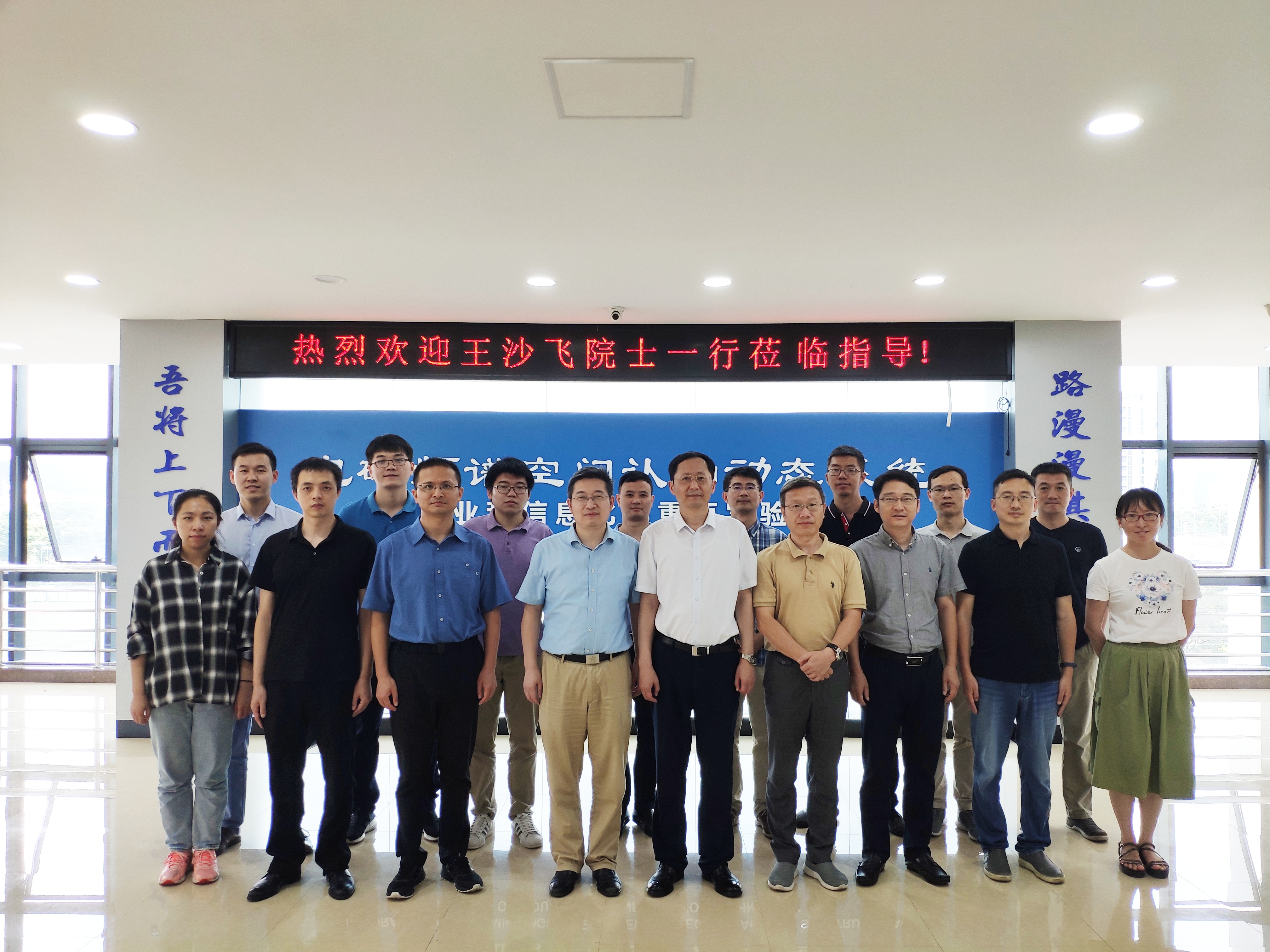 2020年8月6日上午,中国工程院王沙飞院士一行5人莅临天地一体频谱认知智能实验室指导与交流。校长助理、91免费视频 常务副院长、天地一体频谱认知智能实验室主任吴启晖教授率领部分教师与研究生参加了交流研讨,校科研院国防处招启军副处长一同参加了交流。