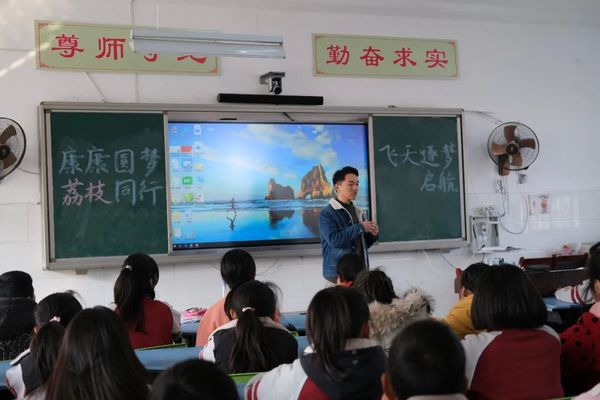 2020年12月6日,“康康圆梦·荔枝同行”公益研学项目再次踏上旅程,来到涟水陈师中心小学。在涟水县妇联、县扶贫工作队的支持下,我校七名大学生志愿者以“初心不改,筑梦再续”为主题,通过“教学做合一”的方式与陈师中心小学的孩子们共赴航空航天的筑梦之约。