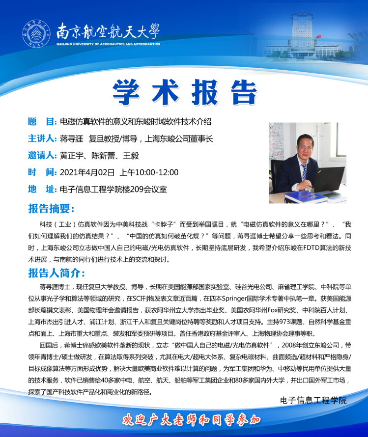学术报告——电磁仿真软件的意义和东峻时域软件技术介绍