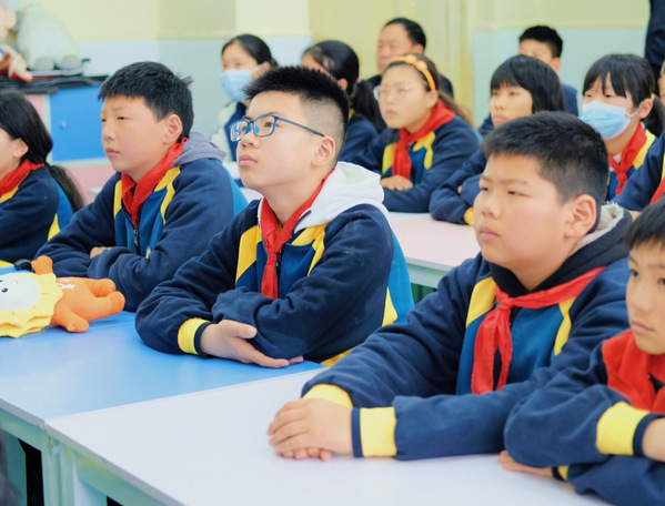 支教志愿者周鑫通过讲解火箭模型的组装和发射,并指导孩子们动手组装模型,提升孩子的动手能力,孩子们专注的神情闪着明亮光芒!