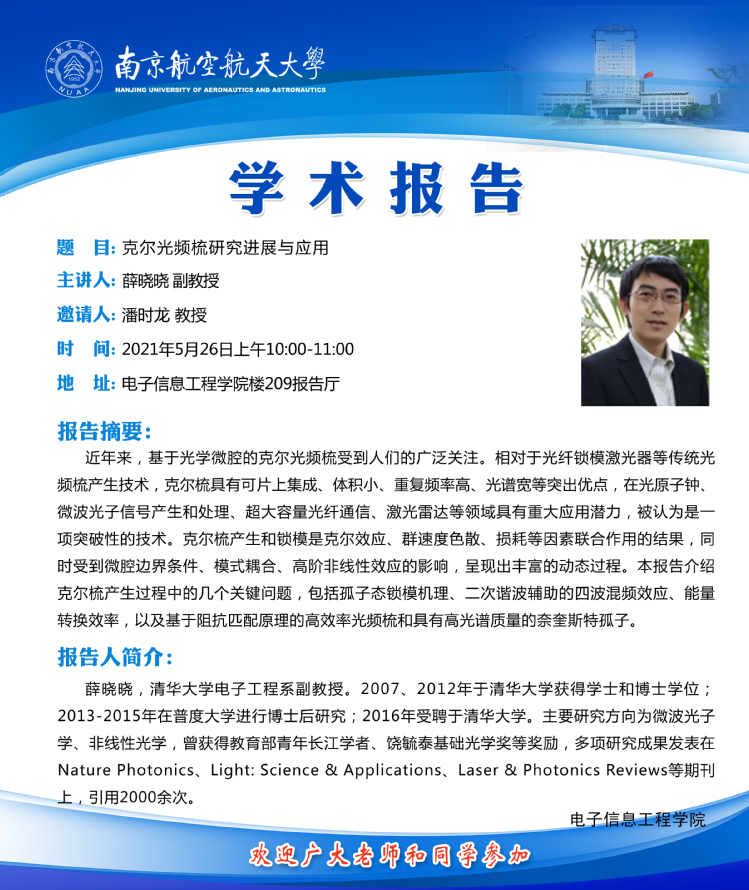 学术报告——克尔光频梳研究进展与应用