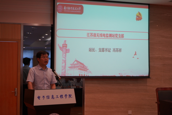 江苏省无线电监测站党支部书记、站长冯苏祥围绕党建和单位建设讲述了江苏省无线电监测站在党史学习教育之中的支部建设、并对于专业技术及监测站业务情况进行了汇报,冯苏祥表示此次三方共建也是为落实 “两个强国”建设,促进高质量发展做出更大的贡献。