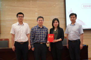 中国航天科工集团八五一一研究所第一党支部支部书记冀贞海介绍了信息对抗总体部第一党支部的基本情况,并且详细讲述了支部特色活动以及对于此次共建的畅想。天地一体频谱认知智能实验室研究生党支部指导老师朱秋明围绕实验室党建、科研成果、人才培养向在场的领导及师生汇报了党支部的基本情况。领导代表中国航天科工集团八五一一研究所纪委书记、工会主席徐国平做了总结发言。