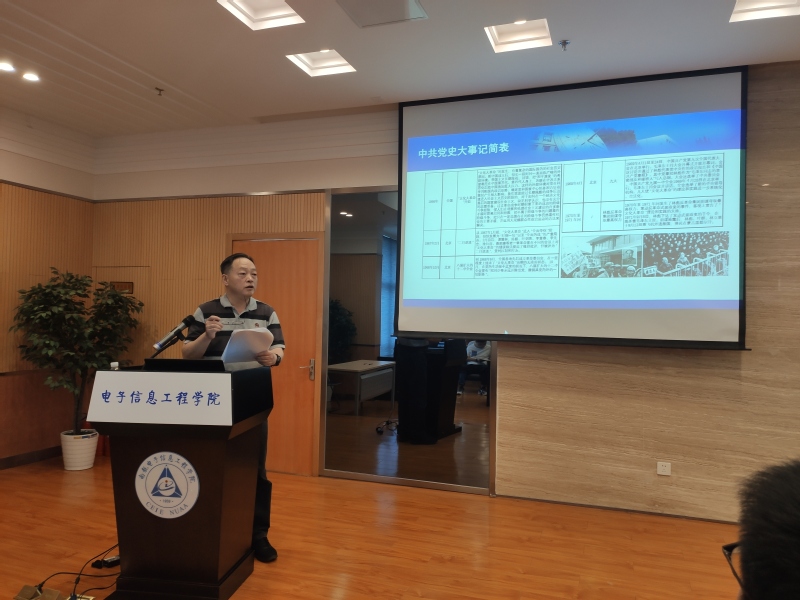 首先,后勤支部书记李辉同志给党员同志们详细介绍社会主义革命和建设时期的重大历史事件,从开国大典,抗美援朝,中共八大,再到“大跃进”,“文化大革命”,十一届三中全会。中国共产党带领全国人民,取得了抗日战争的胜利,建立了新中国,进入了社会主义社会;也因经验不足,在社会主义建设时期曲折前进。