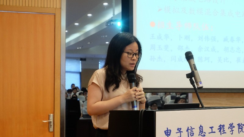 随后,葛芬、朱秋明分别代表电子信息科学与技术系、通信与信息工程系介绍学院系部内导师和科研团队的研究方向及主要科研成果,鼓励2022届本科生报考我校研究生。