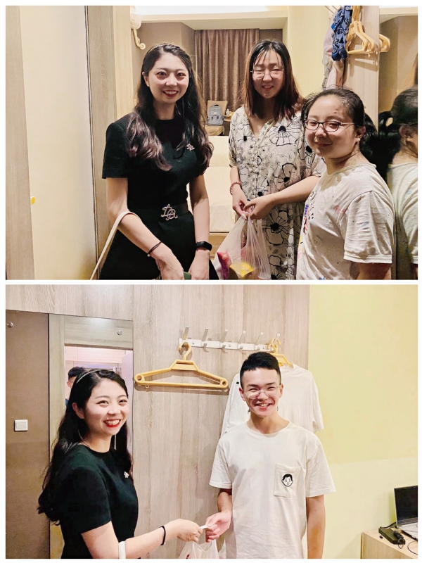 当天晚上,院辅导员郭力榕老师来到宾馆亲切看望各位同学,鼓励同学们迅速调整状态,以饱满的热情投入到实习活动中。