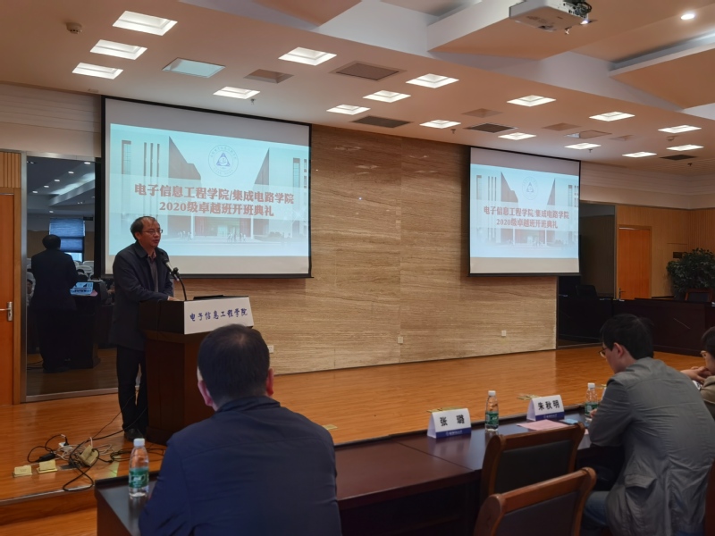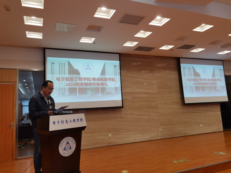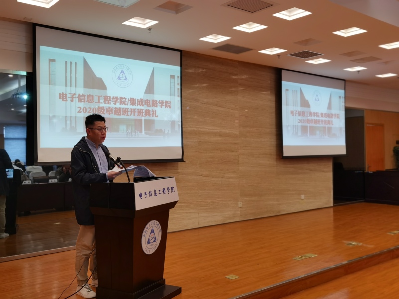 11月4日,91免费视频 /集成电路学院2020级本科生卓越工程师班开班典礼在学院515报告厅顺利举行,院长助理牛臻弋、电子科学与技术系系主任刘冰、系副主任王毅、信息与通信工程系系主任夏伟杰、实践教育中心副主任邱旦峰、2020级卓越班班主任胡志忠、朱秋明、企业代表中兴通讯股份有限公司行业总工张慧、南京华成微波技术有限公司总经理任波等出席典礼,2020级全体卓越班学生参加典礼。典礼由牛臻弋主持。