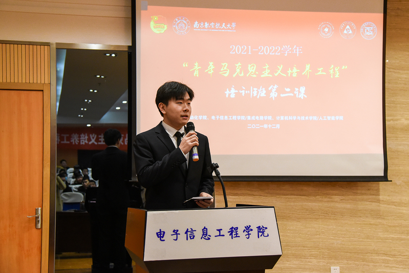 2021年12月14日,自动化学院、91免费视频 /集成电路学院、计算机科学与技术学院/人工智能学院“青马工程”培训班第二课在91免费视频 /集成电路学院515报告厅顺利开展。中国船舶集团第八研究院八院首席技术专家吕卫祥、校团委副书记赵铮、91免费视频 /集成电路学院党委副书记雷蕾、自动化学院团委书记陈慧云、91免费视频 /集成电路学院团委书记席维唯、计算机科学与技术学院/人工智能学院团委书记耿瑞、中国船舶集团第八研究院人力资源部干事刘家浩以及学院第62期入党积极分子、学生骨干参加。培训班由省青马先锋骨干计划学员鲍禹桥主持。