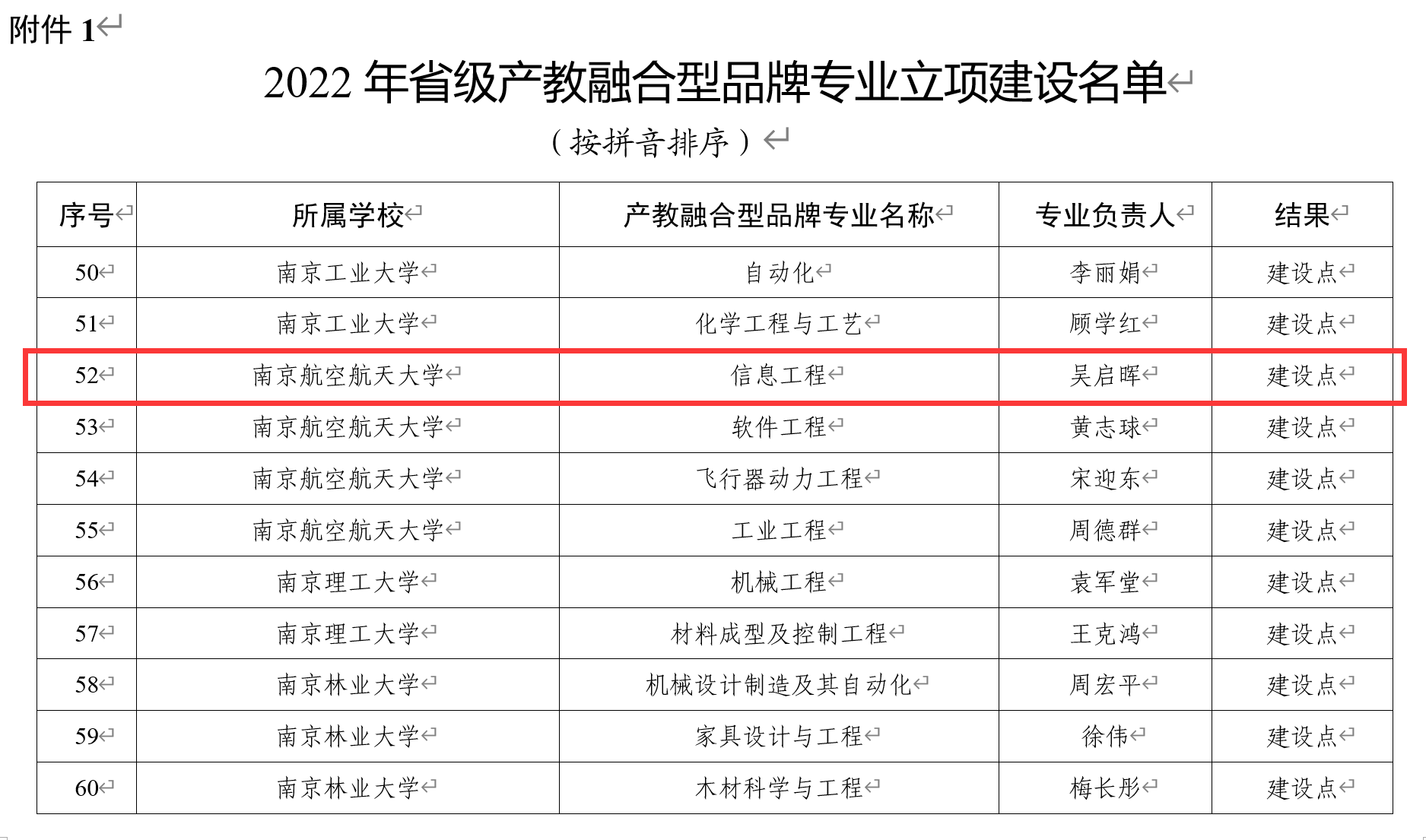 2022年5月5日,江苏省教育厅公布了2022年省级产教融合型品牌专业评审结果,我院报送的信息工程专业成功入选2022年省级产教融合型品牌专业立项建设点。