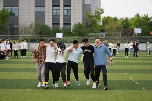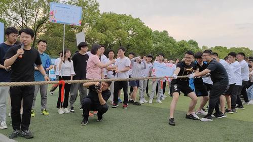 九支队伍分别在“欢乐开场气球接力”、“节奏大师六人七足”、“你追我赶迎面接力”、“团结协作珠行千里”等四个项目中开展激烈比拼,同学们热情高涨,与导师们团结协作完成一个又一个项目。中场休息期间领导嘉宾也贴心地为全场师生送上千元大奖抽取的活动。最后由九支团队交叉组成的两队师生拔河将本次运动会推向高潮。