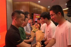 0422002班班主任朱丹作为班主任代表发言,对同学们提出了以己为鉴、以朋为友和实践担责的三点建议。各班主任也依序上台为新生寄语,以不同的方式表达了自己对新生们的殷切期望。而新生们为表达对班主任的敬意也以班级为单位派出代表为班主任们献上鲜花,合影留念。为强化新生班集体概念,提升集体荣誉感,学院全体领导为12个班级代表进行了授旗。