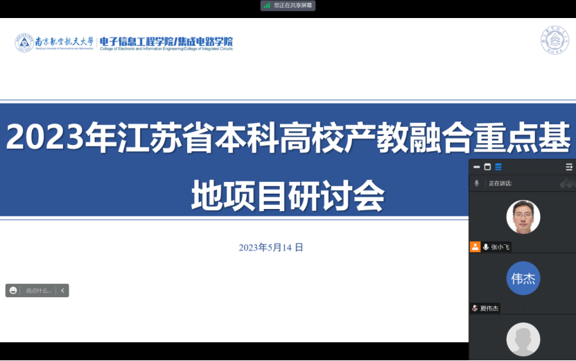 2023年5月14日晚,91免费视频 召开2023年江苏省本科高校产教融合重点基地项目线上研讨会,会议由张小飞副院长主持,院长助理夏伟杰、实践教育中心副主任邱旦峰、系专业负责人胡志忠、系科研副主任李明磊、王鹏老师及教学办成员胡欣怡、江菊华共8位老师参加了本次会议。
