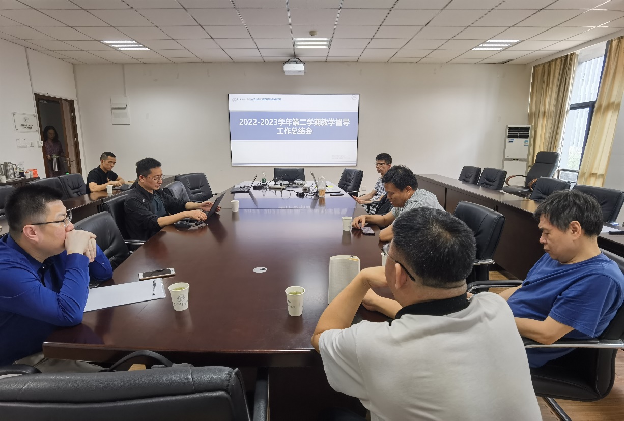 2022-2023学年第二学期督导工作总结会于学院211会议室召开。学院教学督导组臧春华、曾庆生、郭荣辉、刘方,副院长张小飞,教学副主任王毅,教师代表,教学办工作人员参加了此次会议。会议由张小飞主持。