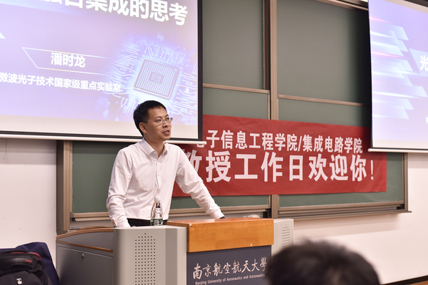 2023年10月7日晚7点,我院本学期第一期教授工作日在天目湖校区成功举办。本期活动得到了同学们的热烈欢迎,200余人齐聚在T1 115教室之中想要在光子学世界中遨游,学习专业知识,了解更多前沿信息。潘时龙教授从芯片战争切入主题,强调了掌握光电协同技术的重要性,并分别论述微电子与光电子的优劣之处,提出光电融合集成是未来必然发展趋势。
