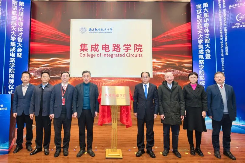 单忠德、郑有炓、姜斌、陆志鹏、张红岩、谭晓平、刘宇雷、吴启晖共同为集成电路学院揭牌。