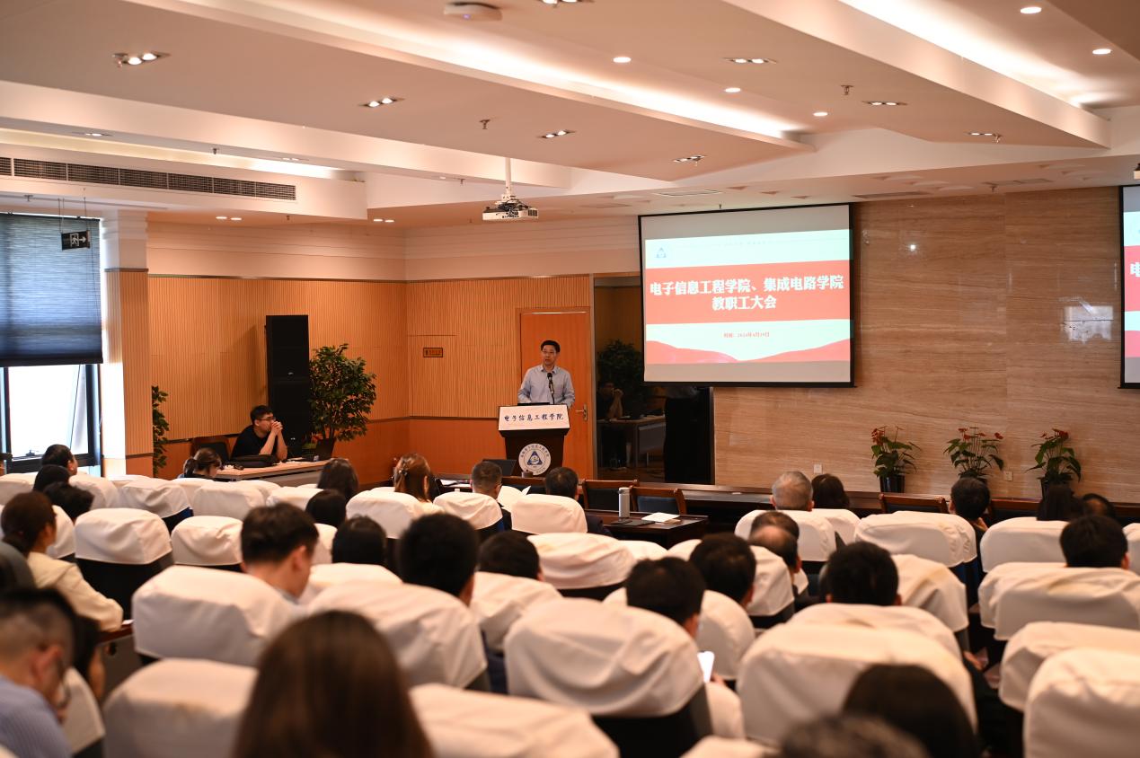 、集成电路学院召开全院教职工大会暨师德师风专题宣讲会,推进学院师德师风建设,部署2024年学院重点工作。会议邀请校党委常委、宣传部/教师工作部部长王晖作师德师风专题报告。学院全体教职工参加会议,会议由党委书记季海群主持。
