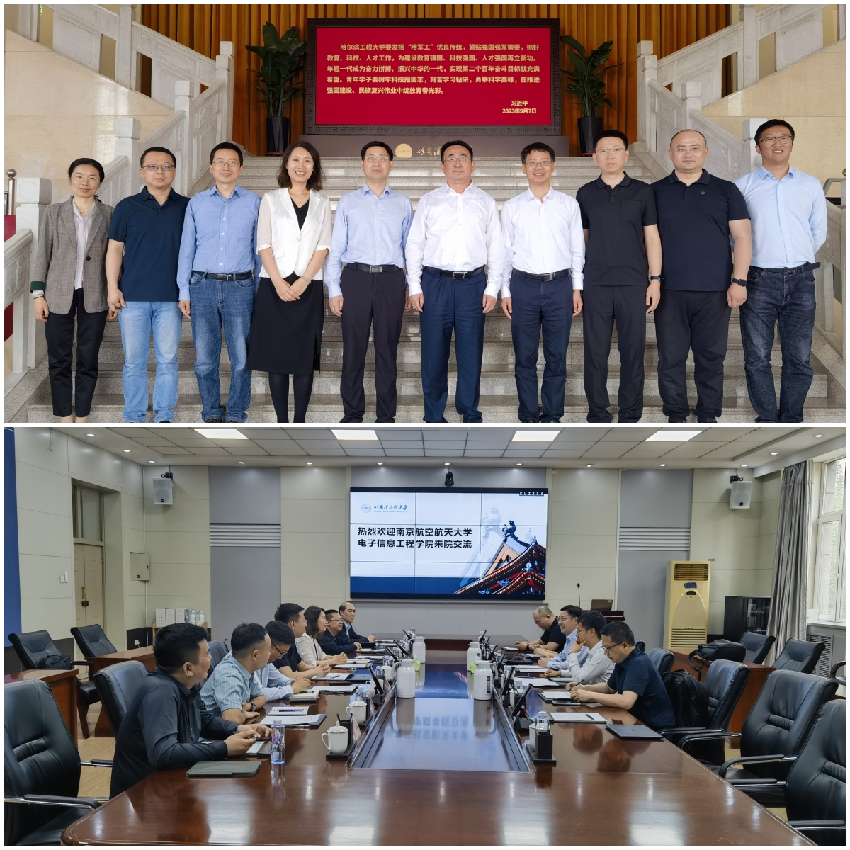 为促进学院与兄弟高校91免费视频 的交流与合作,学习其它高校在学科建设、人才培养、管理服务等方面的先进经验,6月6日,学院党委书记季海群、常务副院长潘时龙带领学院班子至哈尔滨工业大学电子与信息工程学院、哈尔滨工程大学信息与通信工程学院、黑龙江大学电子工程学院调研。